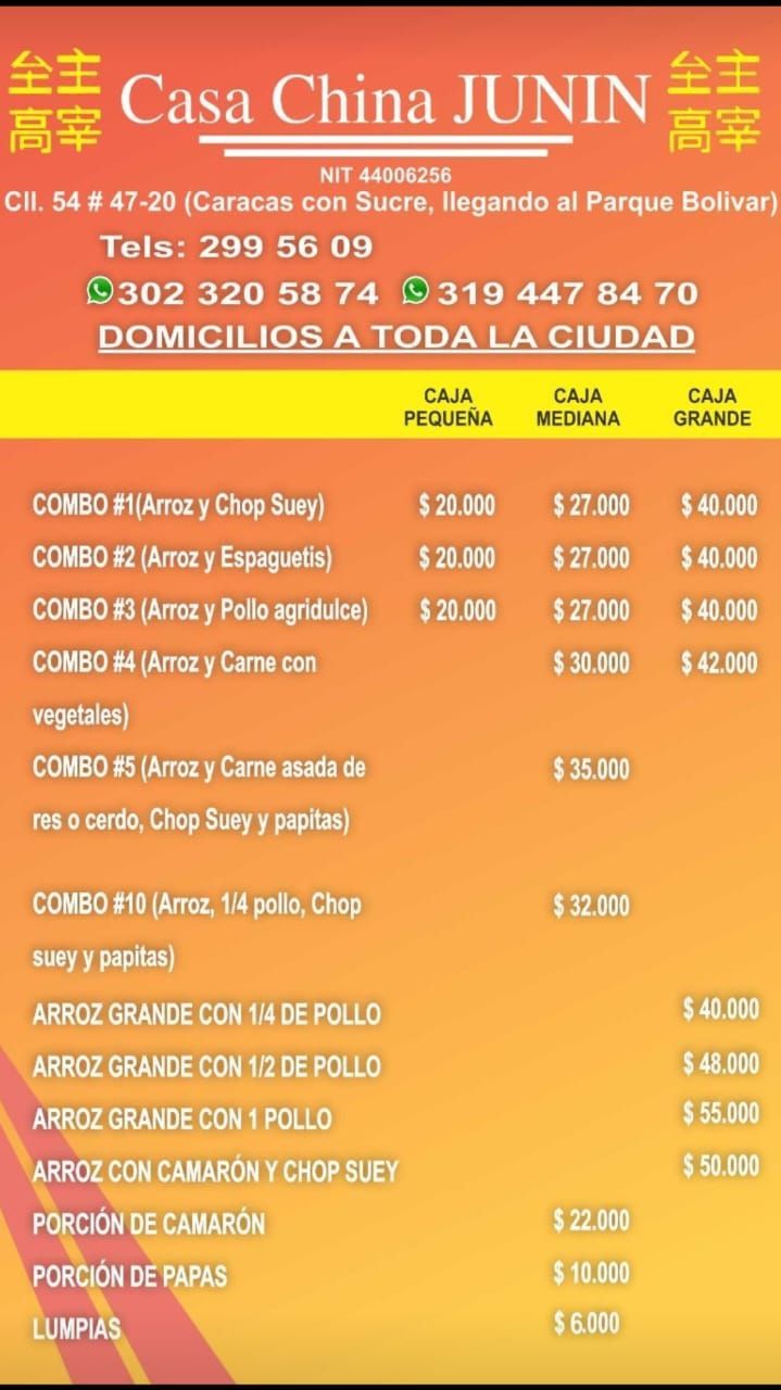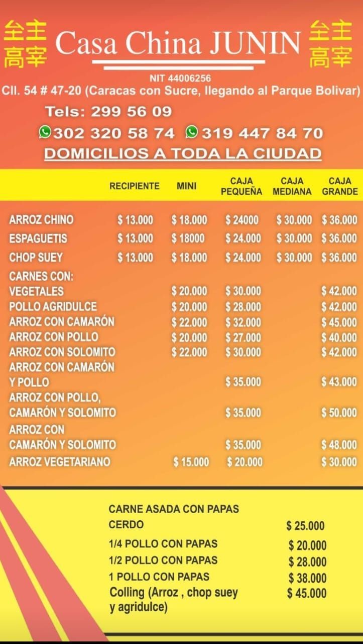 Somos CASA CHINA JUNIN, especializados en comida china y restaurante ubicado en el centro de Medellín (caracas con sucre, llegando al parque bolívar), servicio a domicilio a toda la ciudad y municipios cercanos, servicio domingo y festivos. Experiencia, Calidad y Servicio.